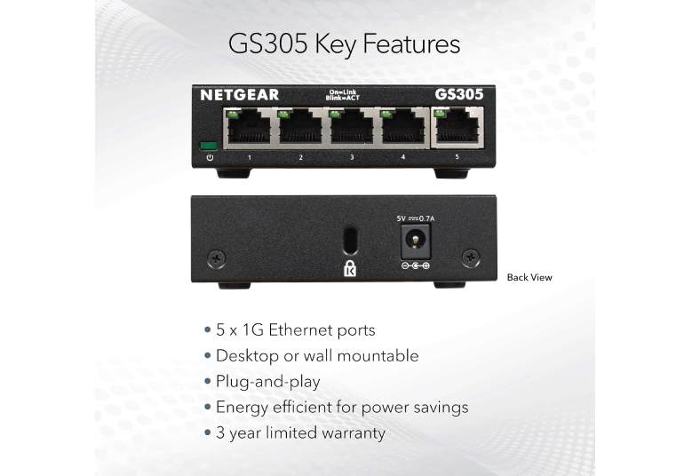 Be the first to review “NETGEAR 5-Port Gigabit Ethernet SOHO Unmanaged Switch with 4-Ports PoE+ (63W) (GS305P)”