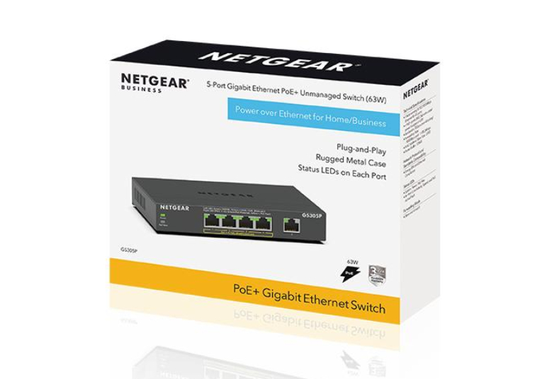 NETGEAR 5-Port Gigabit Ethernet SOHO Unmanaged Switch with 4-Ports PoE+ (63W) (GS305P)